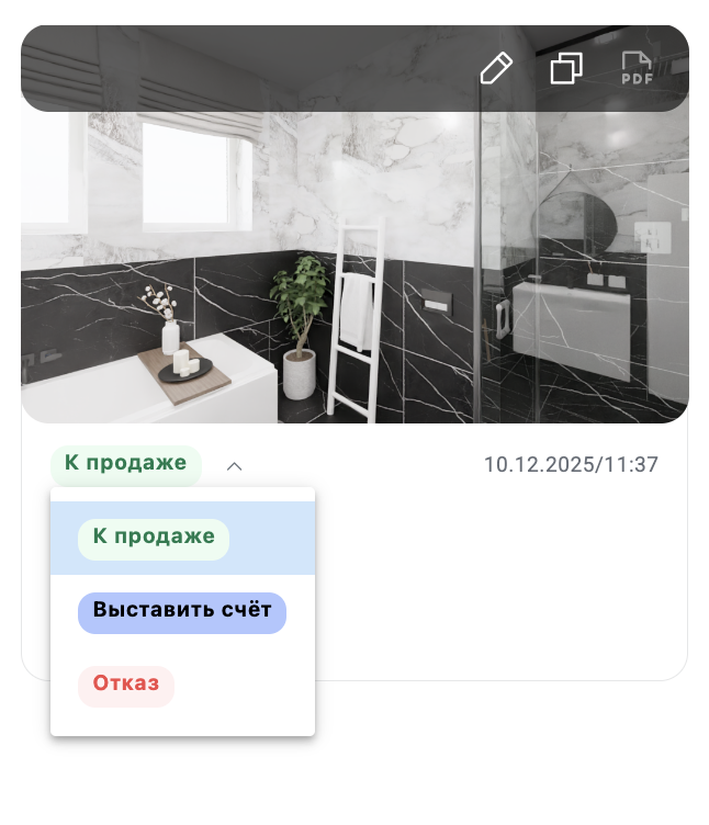 - на платформе Ceramic 3D Бизнес проект переводит в статус «Выставить счет».