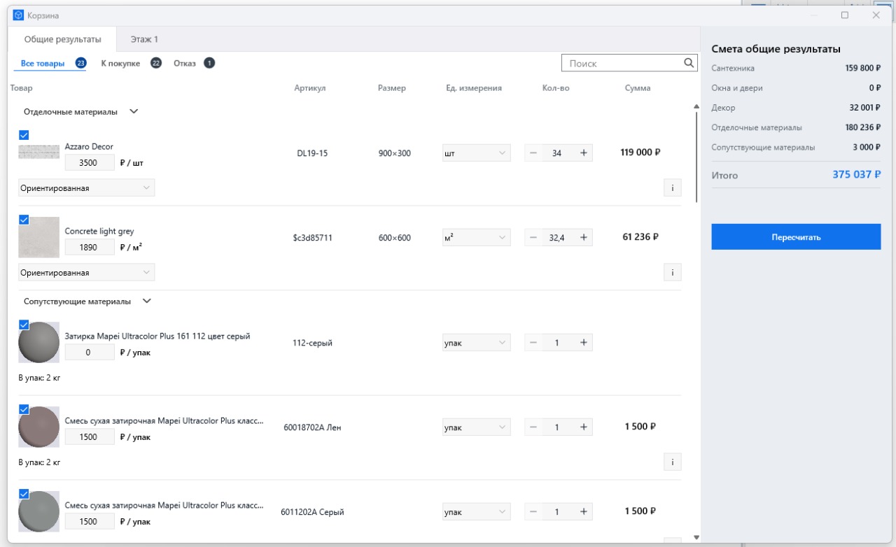 Соответственно, за счет настройки товарной интеграции Ceramic 3D Бизнес с 1С, создания продавцами галереи проектов, настройки функции «Избранное» (где выбираются приоритетные товары для предложения покупателям в проектах), использования готовых решений (готовых проектов) и QR-кодов для распродажи коллекций, управление товарными запасами и ассортиментом становится в разы эффективнее.